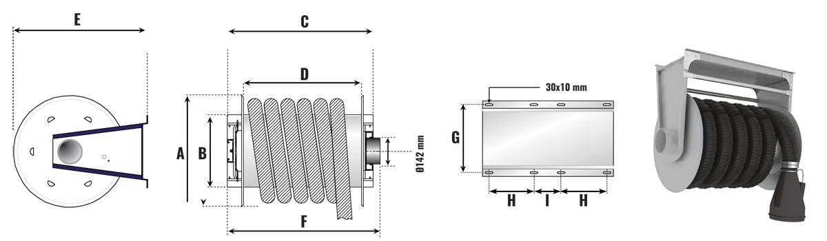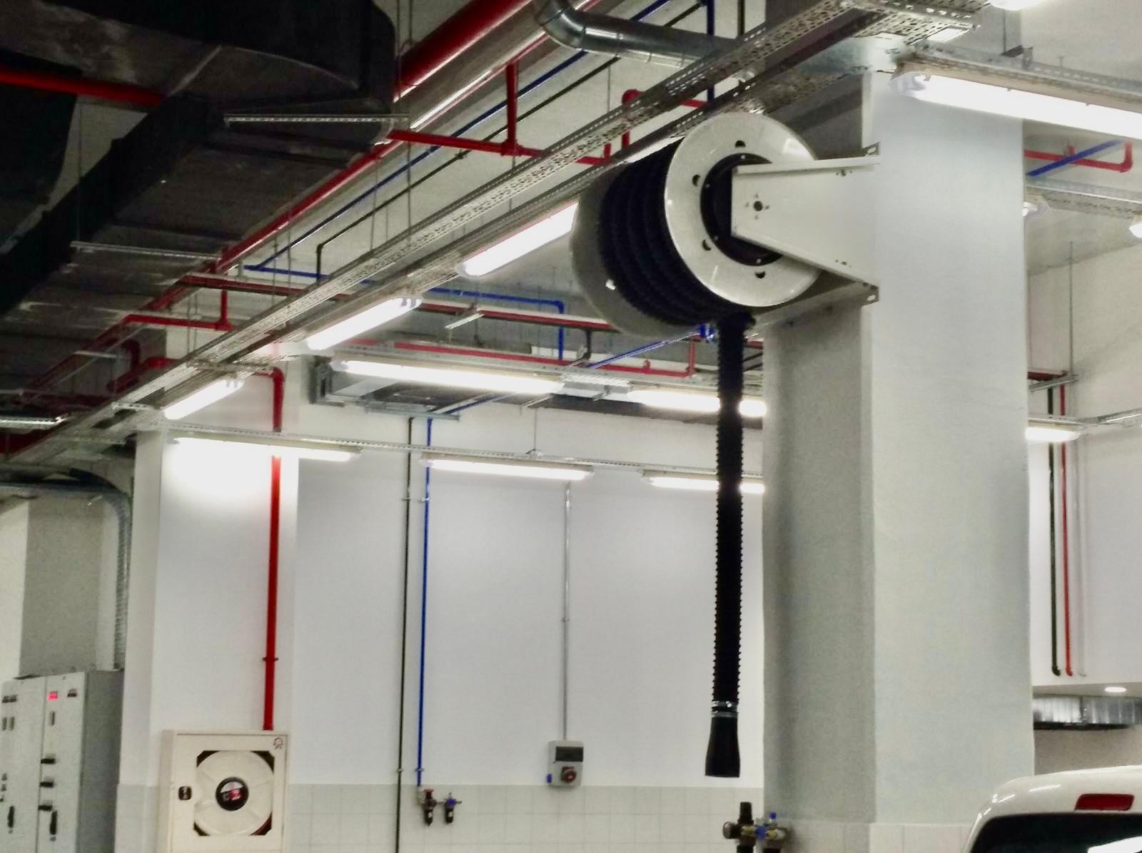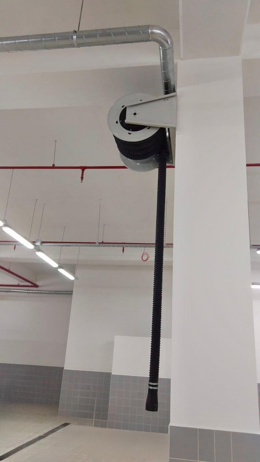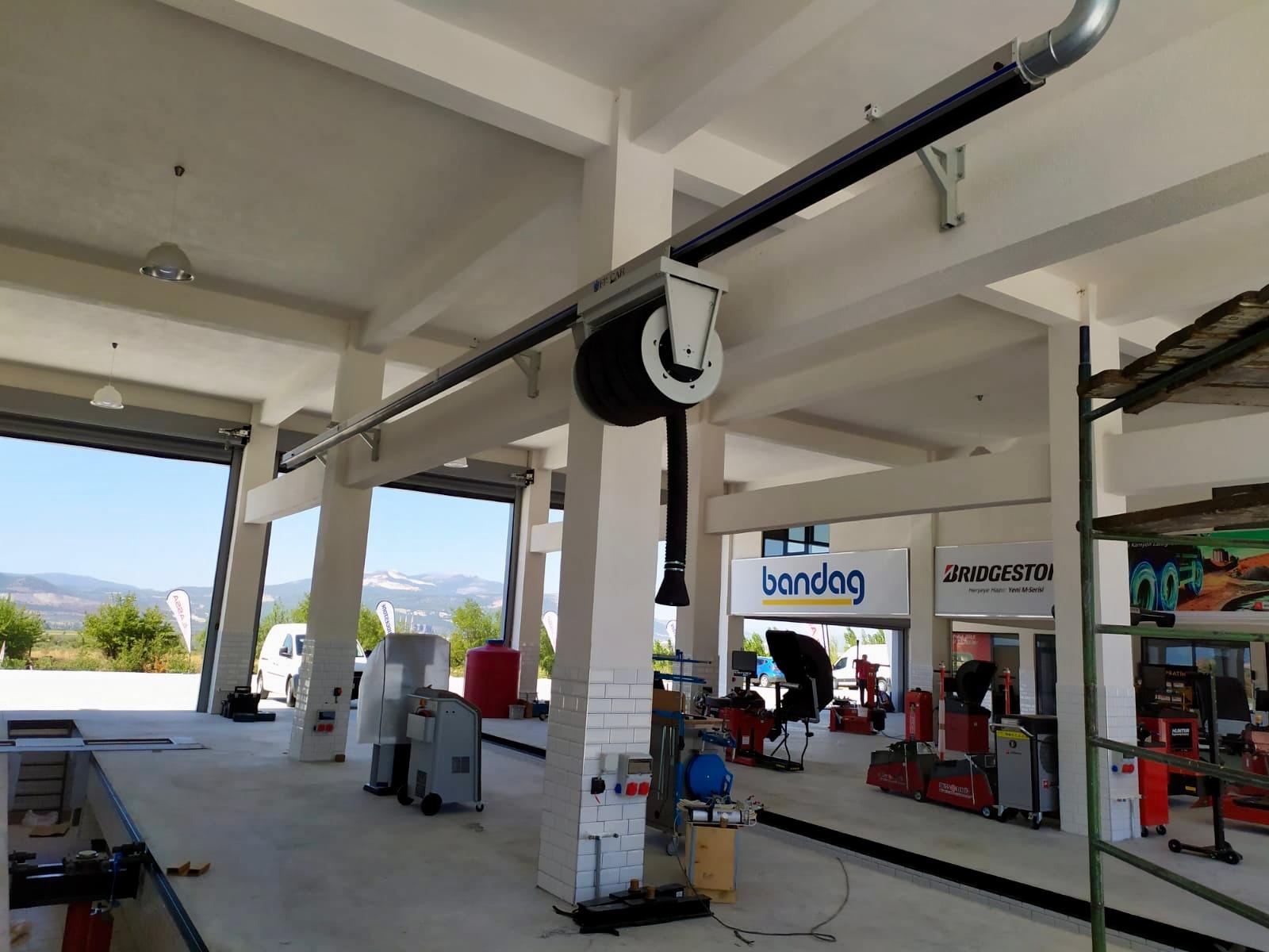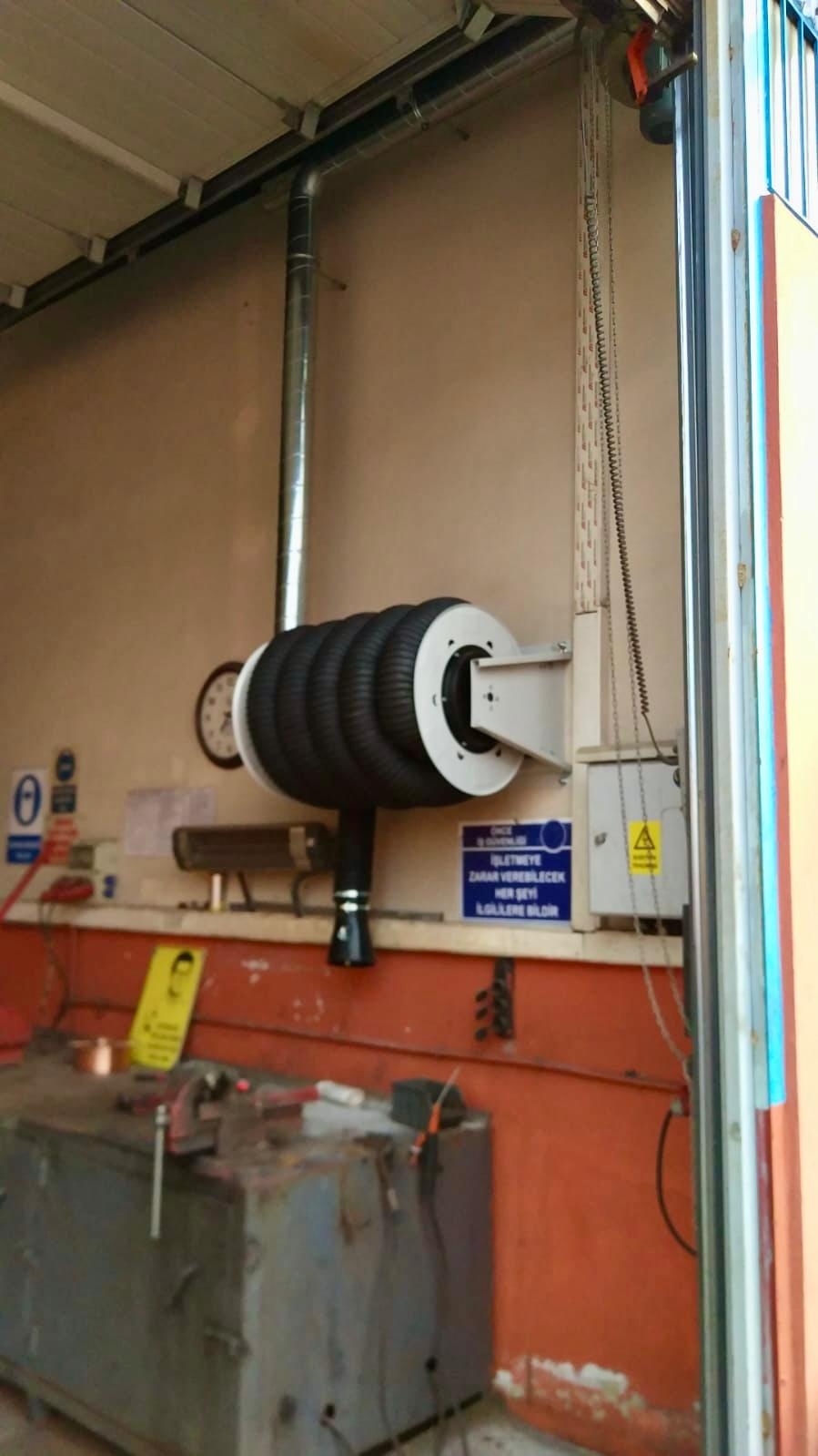 Araç servislerinde, kademelerde, şantiyelerde ve itfaiye garajlarında zehirli egzoz gazının tahliyesi için tavana veya kirişe monte edilebilir. Ayrıca alüminyum ray ile de hareket ettirebilir. Binek, hafif ticari, ağır ticari araçlarda ve iş makinelerinde kullanılabilir.