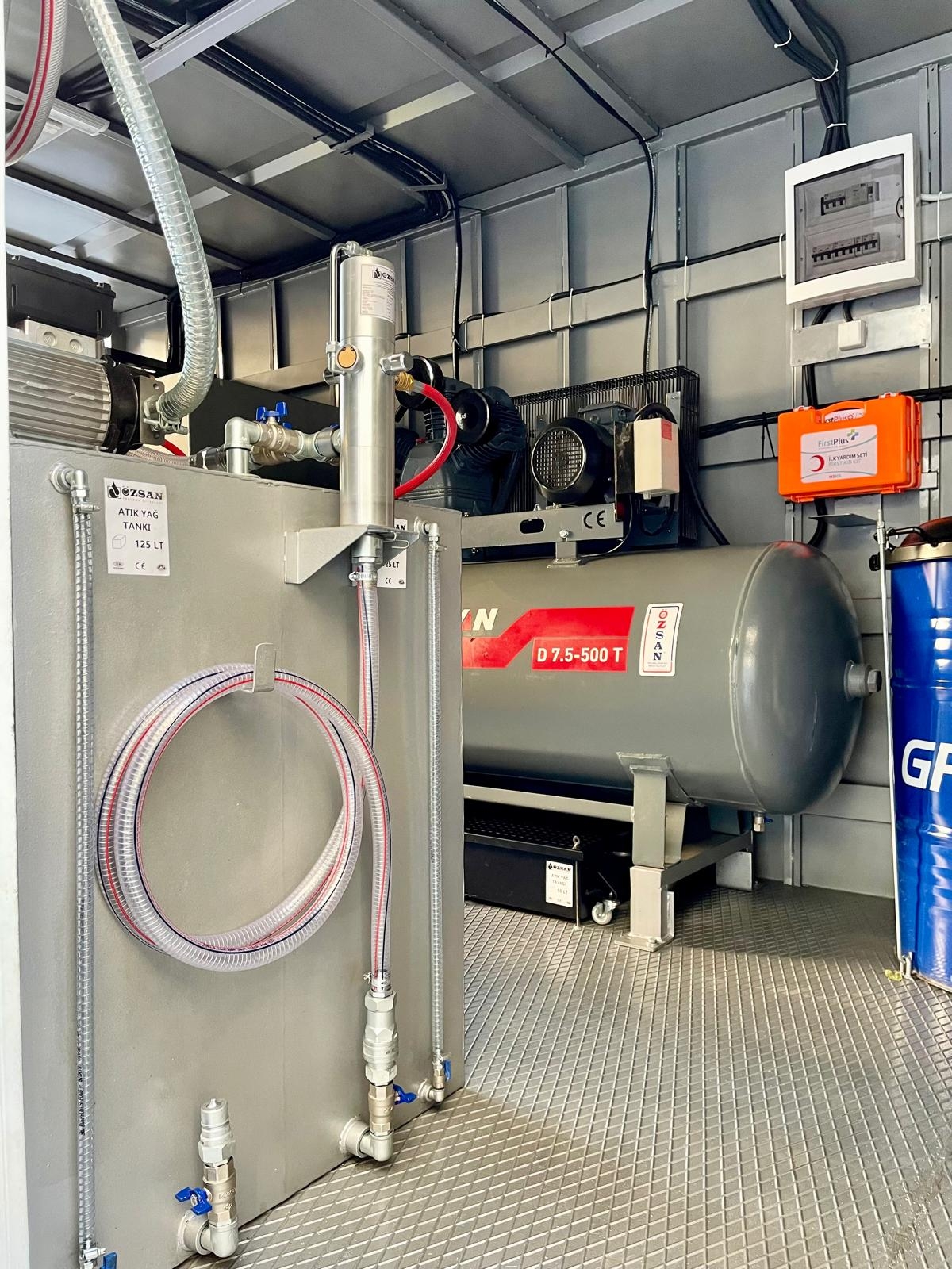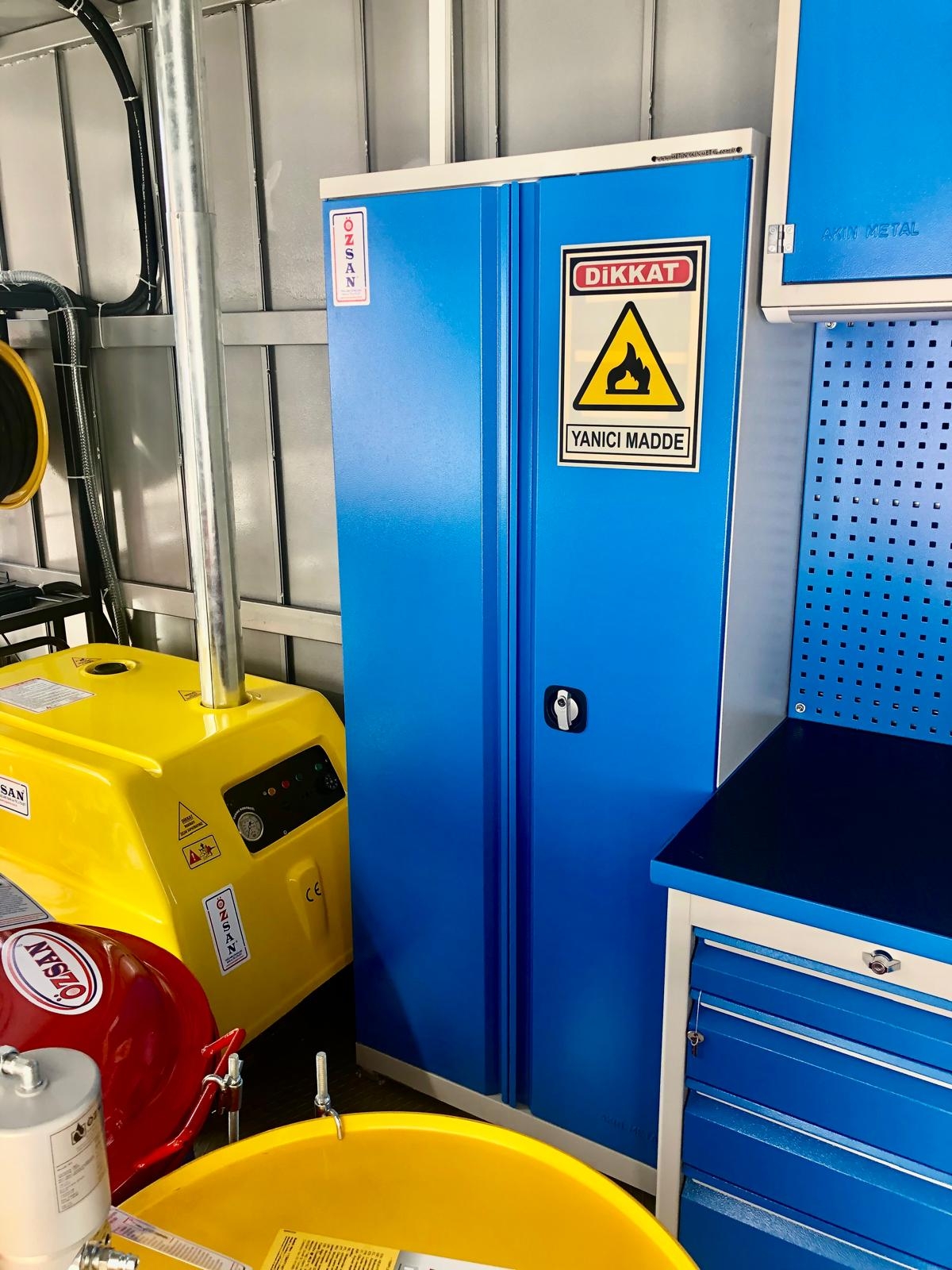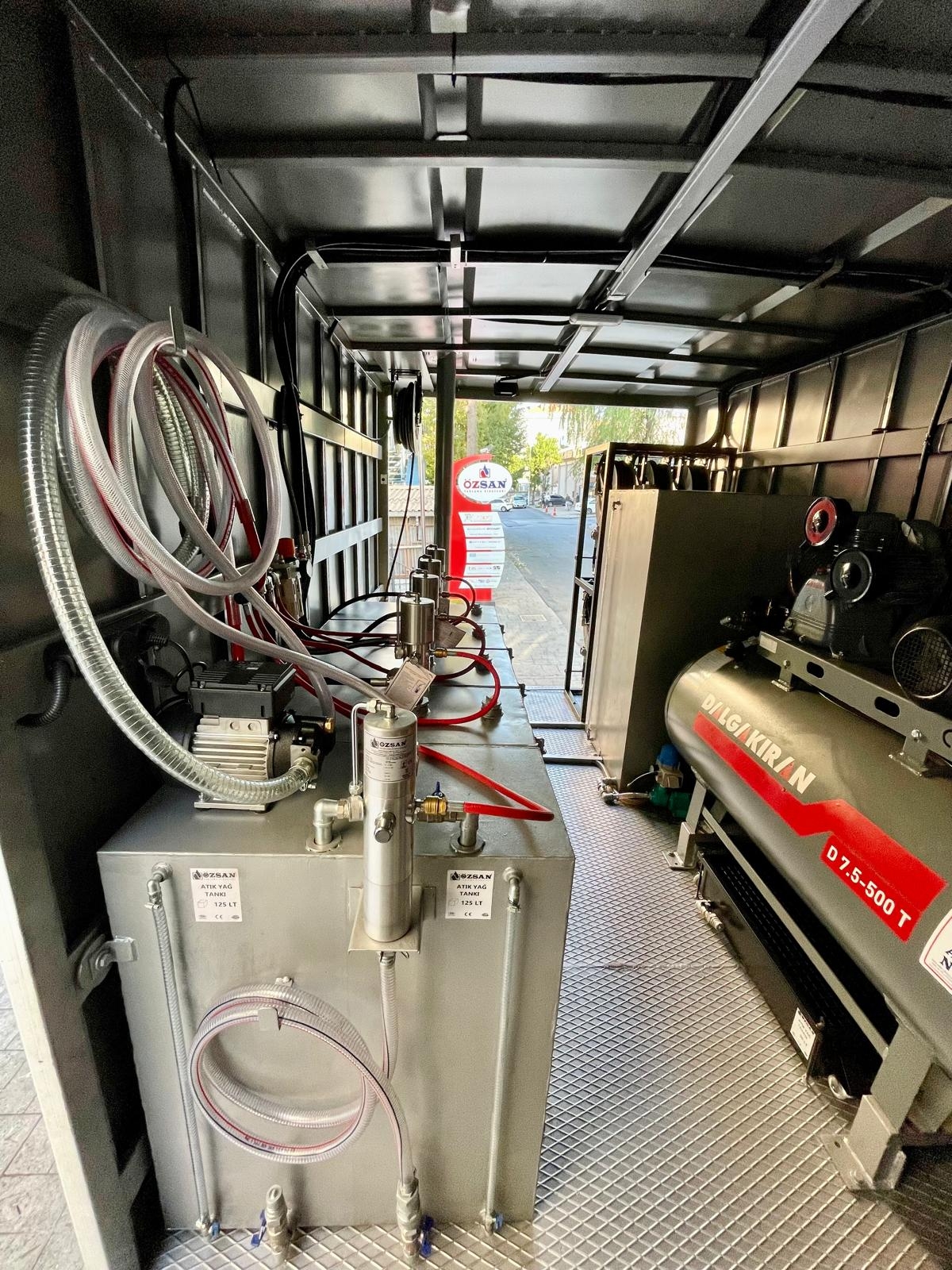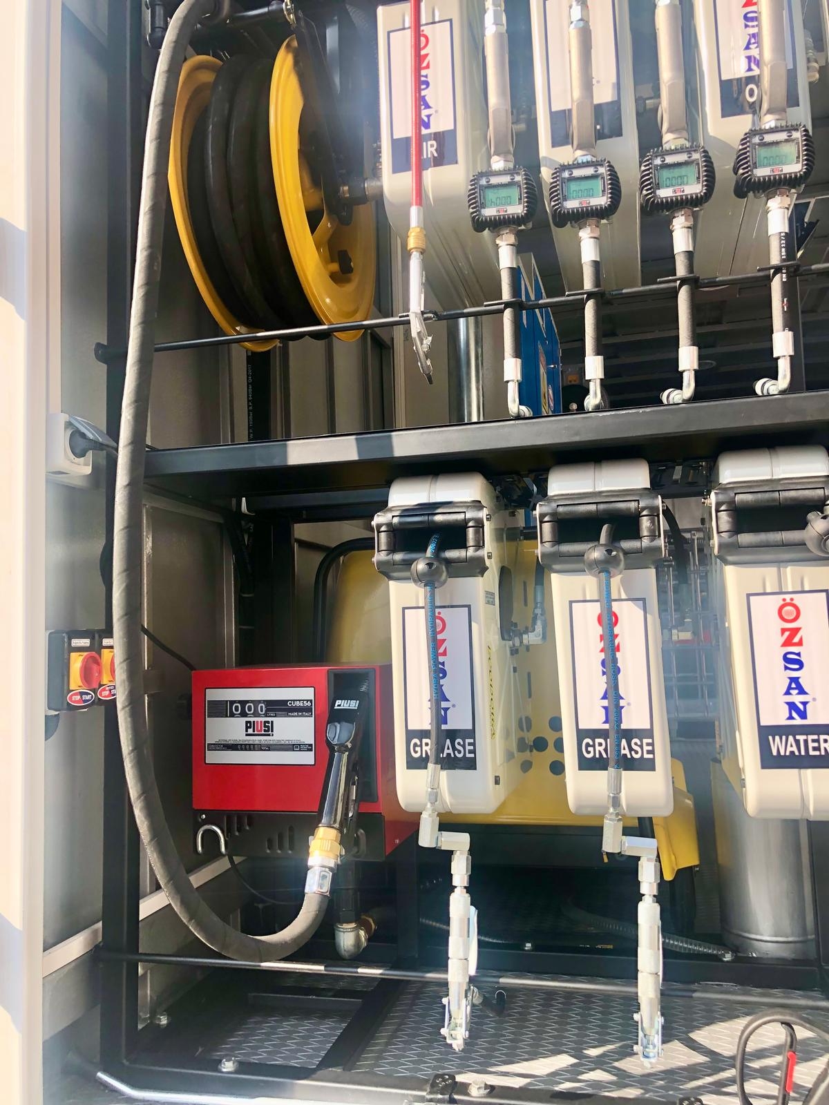 Kısaca içerisindeki ekipmanlar şöyledir; Jeneratör, Kompresör, Yıkama Makinası, Kaynak Makinası, Oksijen Asetilen Tüp Dolabı, Atık Yağ Sistemi, İnce Yağ Sistemi, Gres Sitemi, Hava Sistemi, Su Makarası, Mazot Tankı ve Pompası, Su Tankı, Çalışma Masası, Takım Dolabı, Mengene, Pano, Elektrik Tesisatı, İç ve Dış Aydınlatma vb. dir.
