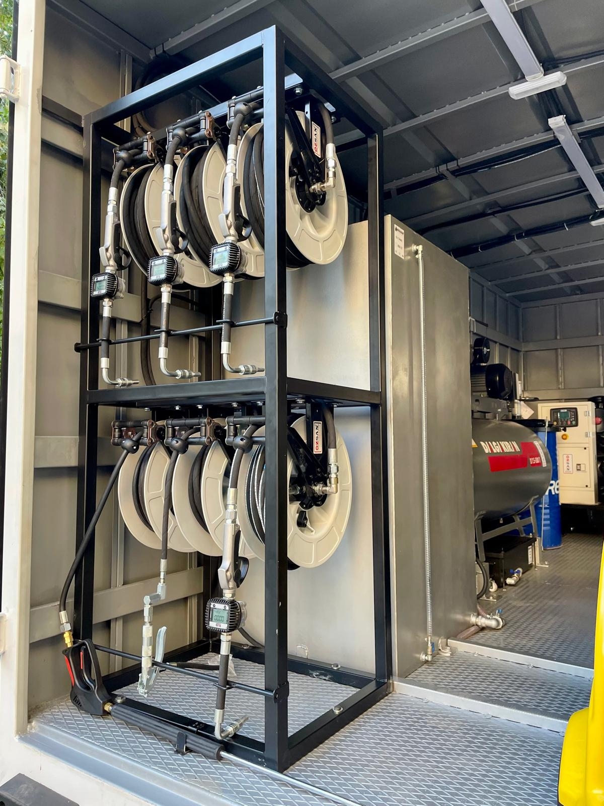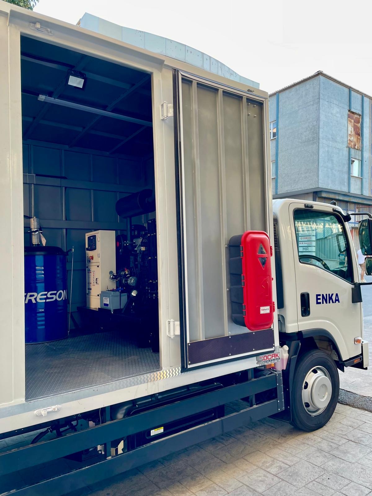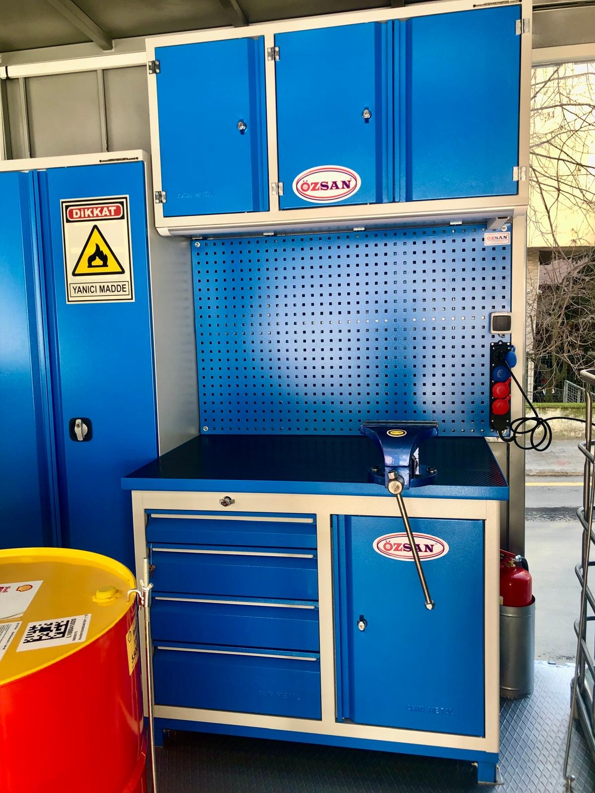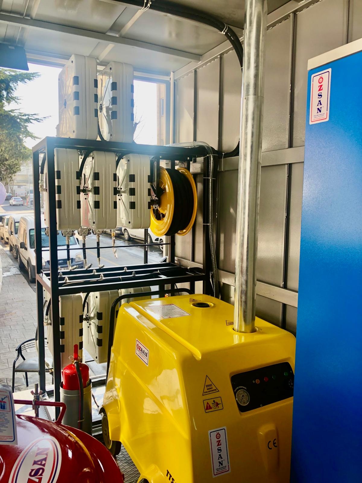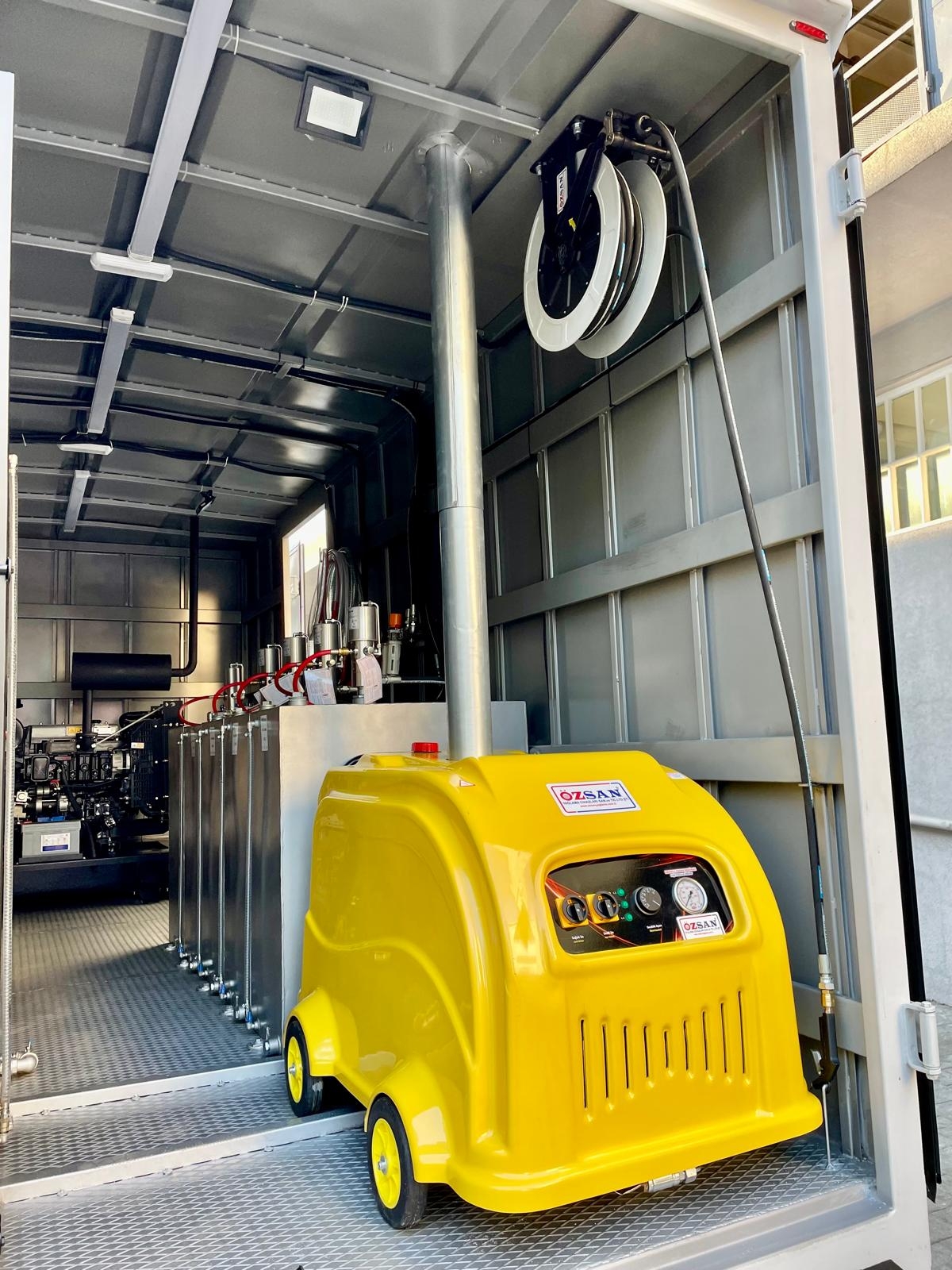 Kısaca içerisindeki ekipmanlar şöyledir; Jeneratör, Kompresör, Yıkama Makinası, Kaynak Makinası, Oksijen Asetilen Tüp Dolabı, Atık Yağ Sistemi, İnce Yağ Sistemi, Gres Sitemi, Hava Sistemi, Su Makarası, Mazot Tankı ve Pompası, Su Tankı, Çalışma Masası, Takım Dolabı, Mengene, Pano, Elektrik Tesisatı, İç ve Dış Aydınlatma vb. dir.